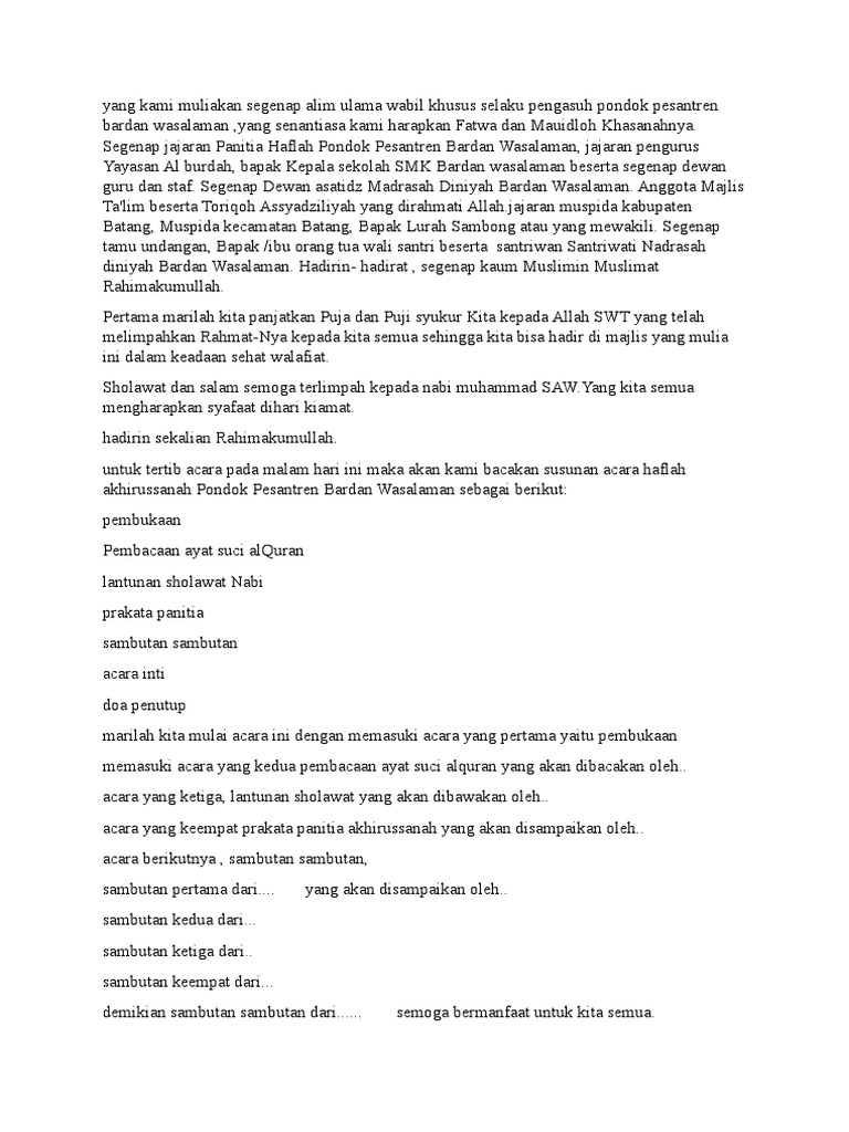 Susunan Acara Akhirussanah Translate Bahasa Inggris Sahabat Nabi Alquran
